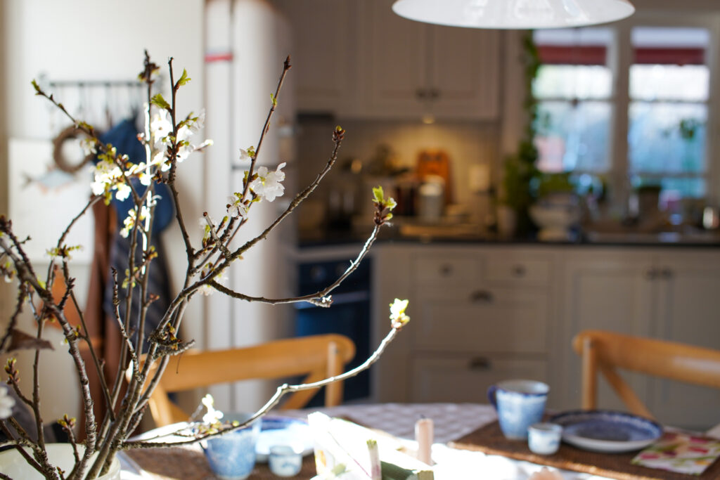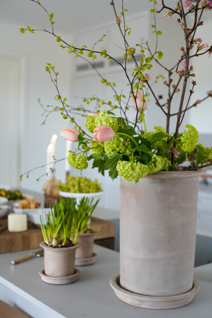 Det blev lite ris i köket igår och i vardagsrummet, min stora tupp kom fram men mer än så har jag inte till påsk. Jag är inte så förtjust i påskpynt, gillar mest bara blommor. Någon duk ska jag kanske stryka till. Nej min tid och mina tankar är utomhus nu.