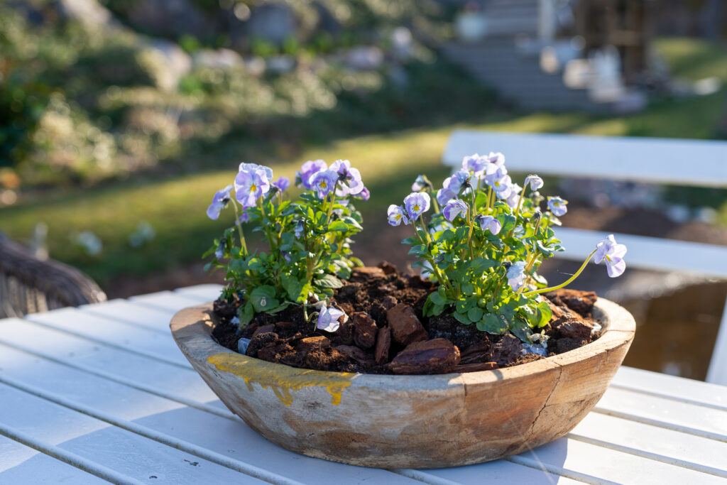 Vi har två odlingslådor framför växthuset som har mycket sol, i en av dessa blir det tomater och en blommor och så ska vi kanske bygga en till på sikt för att odla mat i på framsidan av växthuset.