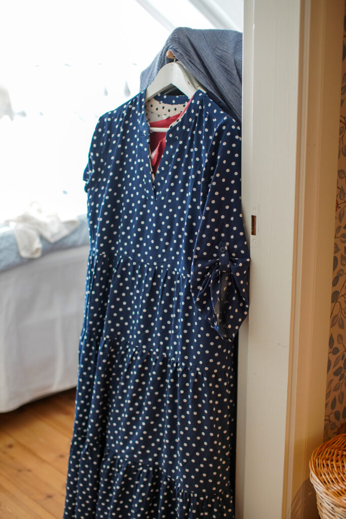 Först tog jag strumpbyxor men de åkte av sedan, smörjde benen istället med lite brun utan sol HÄR