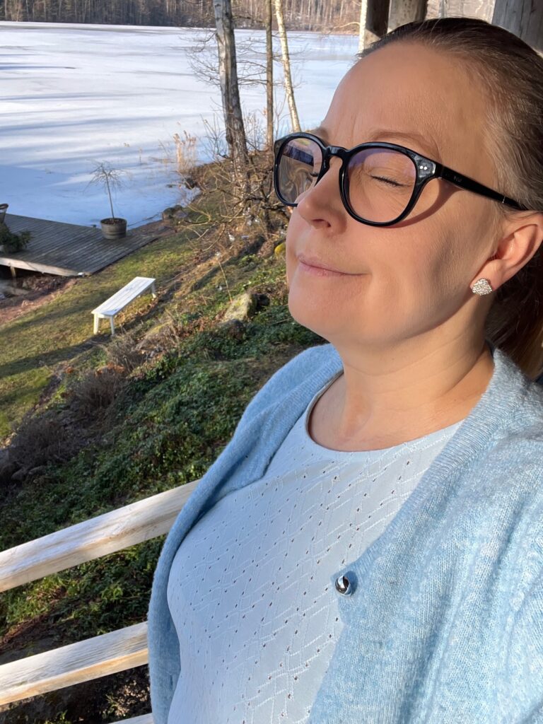 Igår gick jag ut på verandan och kände solen mot ansiktet, kände mig lite sliten för vi haft personalmöte sent och sovit dåligt men det blev en bra dag ändå. På kvällen kom huvudvärken som sa att nu har det varit för mycket så nu drar vi ner tempot lite.