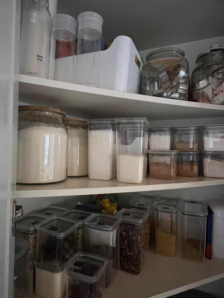 Jag har inte visat så mycket från skafferiet men det blev toppen. Ska försöka få igång märkapparaten så jag kan skriva innehållet på alla burkar. Burkarna till skafferiet finns HÄR. Toppen att de går att stapla.