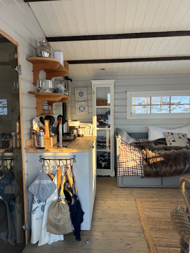 Sedan är det som allt bara faller på plats i Sjöstugan. Alla saker man köpt genom åren passar. Jag har tänkt på ett sånt här ställe som vi äger nu i så många år. När jag handlat handdukar, dynor osv så har det alltid varit i tanken att äga ett hus vid en sjö eller hav.