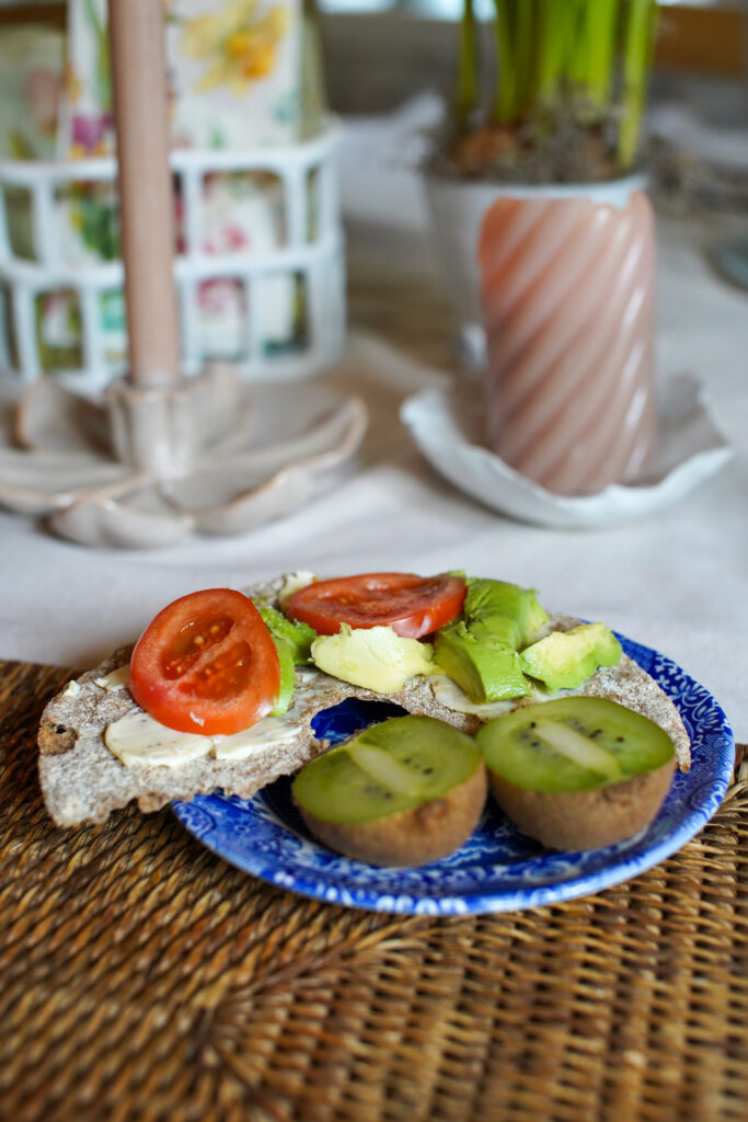 På helgerna kan det bli lite godare frukost än två ägg. Blev knäckemacka, ägg och kivi innan vi startade dagens jobb utomhus.