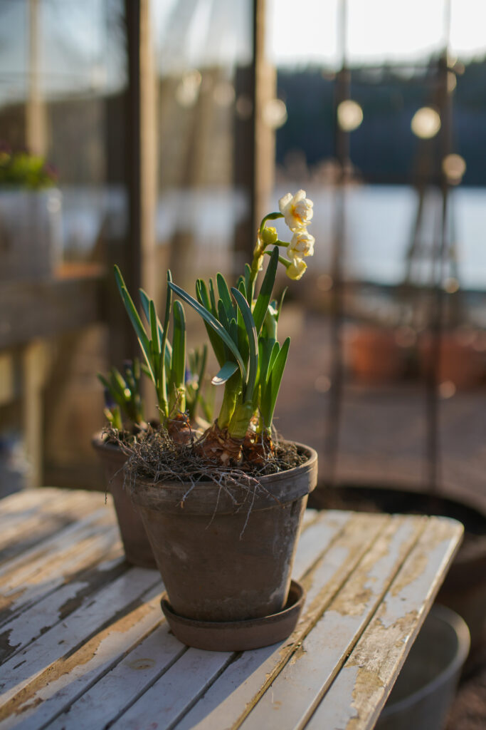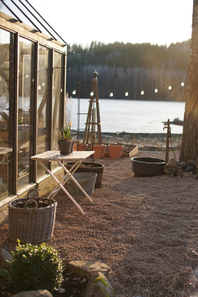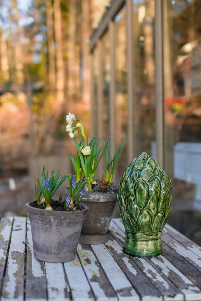 Inomhus håller jag det så enkelt som möjligt på bänkar och och pyntar lite i mina fönster allt för att det ska gå snabbt och städa. Jag vill ha minimalt med jobb inomhus för jag vill lägga min tid utomhus den här årstiden.