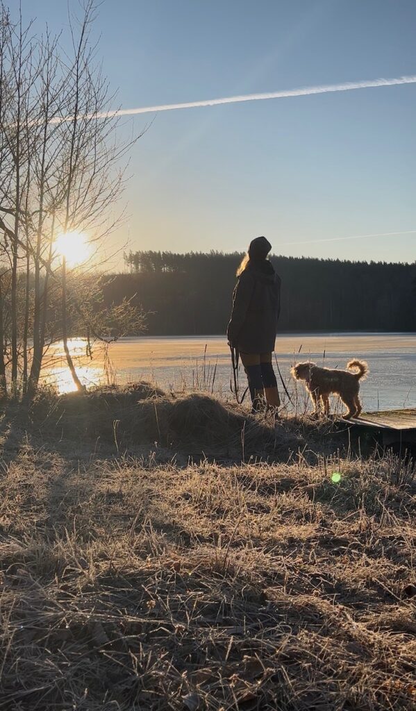 När man inte kan vara inomhus lika mycket och bara vill ut så är det fint att tänka att detta är mitt vardagsrum. Jag är mer här ute en inne i vardagsrummet. När jag var som sjukast satt jag här ute med en mössa på huvud. Kalle brukade elda då i kaminen på verandan. Jag hade så extremt mycket otäcka symptom och som gjorde att mitt huvud bara skrek, mina ögon sved och min hjärna fungerade inte alls.