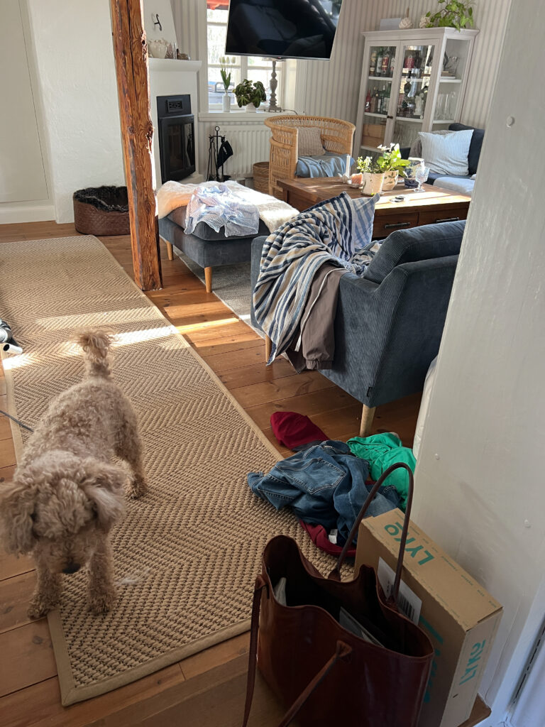 Många bilder på bloggen är vackra och fina , men för det mesta ser det ut så här hemma hos oss. Ja nu går det fort att städa men vi har stökar ner och lever som alla andra men det är inte så kul att visa de här bilderna varje dag. Mina ögon väljer att se det vackra men jag vill att ni ska förstå att allt det där stöket har vi mycket av. Vi är slarviga människor inomhus, men det är skönt att äga litet så det går fort att städa.