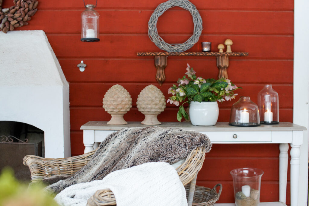 Kottarna är köpa på Löfstad slott handelsträdgård, våra korgmöbler på verandan här