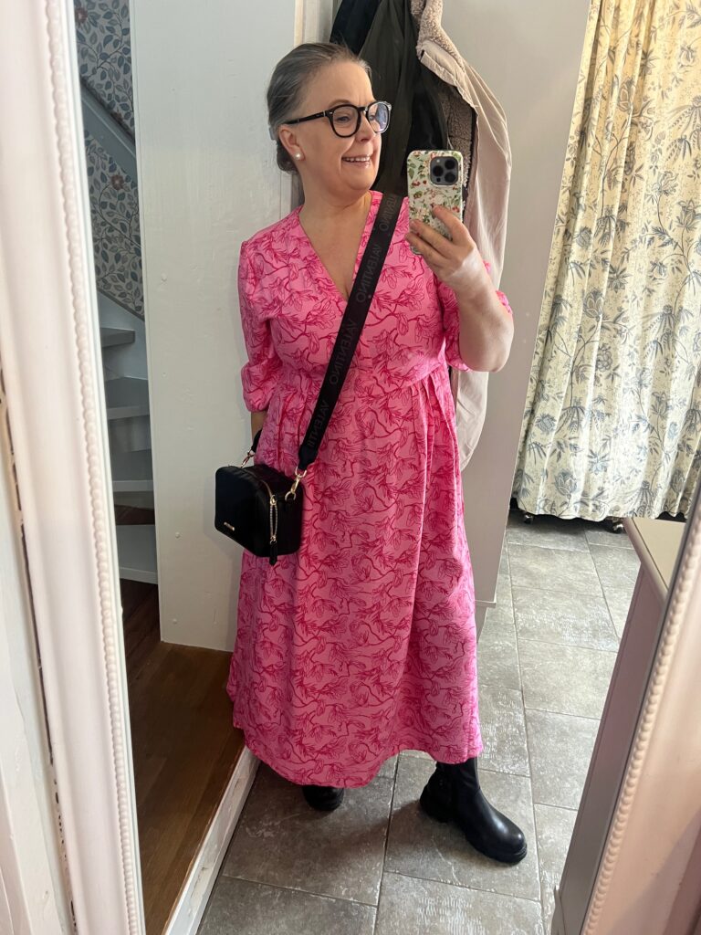 Att sätta lite färg på tillvaron behöver man. Jag går ju som ett litet troll här hemma i pyjamas eller skitiga arbetskläder, men när jag jobbar får jag klä upp mig och ta plats och synas. Klänning här, väska här På jobbet får man ha färg och vara fin. Kontraster är så bra för mig. Nu har jag ätit D vitamin, Magnesium och Omega3 ganska länge och känner mig piggare. Nu kommer värmen också så det känns så bra. Det går åt rätt håll, jag känner det. Känner mig pepp och glad.