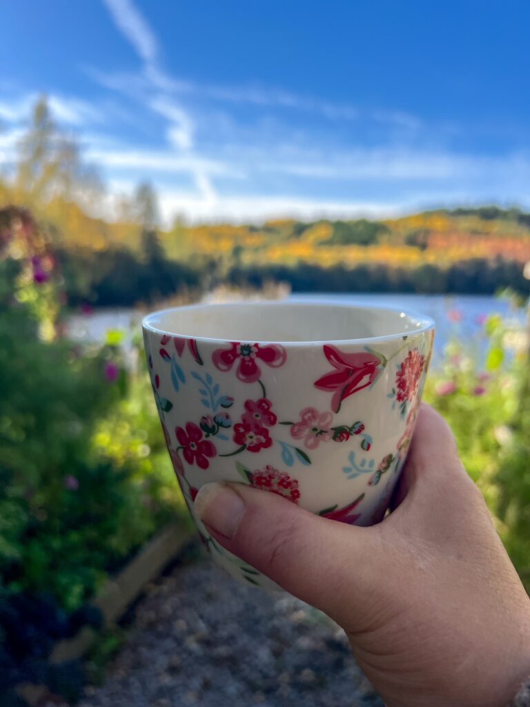 En kaffe i solen blev det idag. Dricker ofast bara en kopp men ibland två.