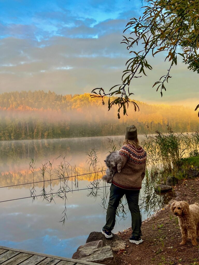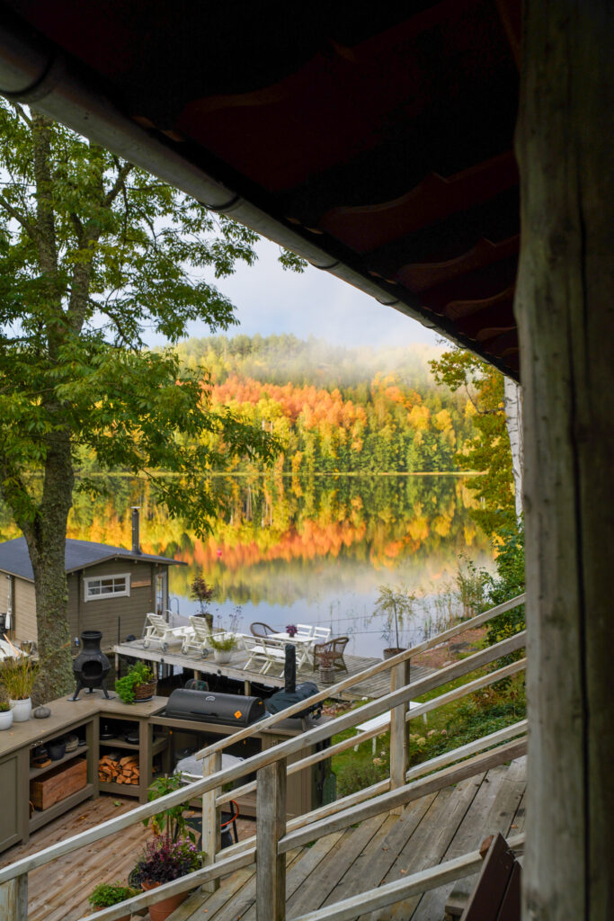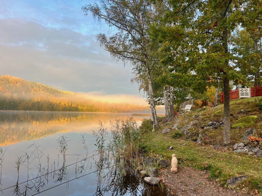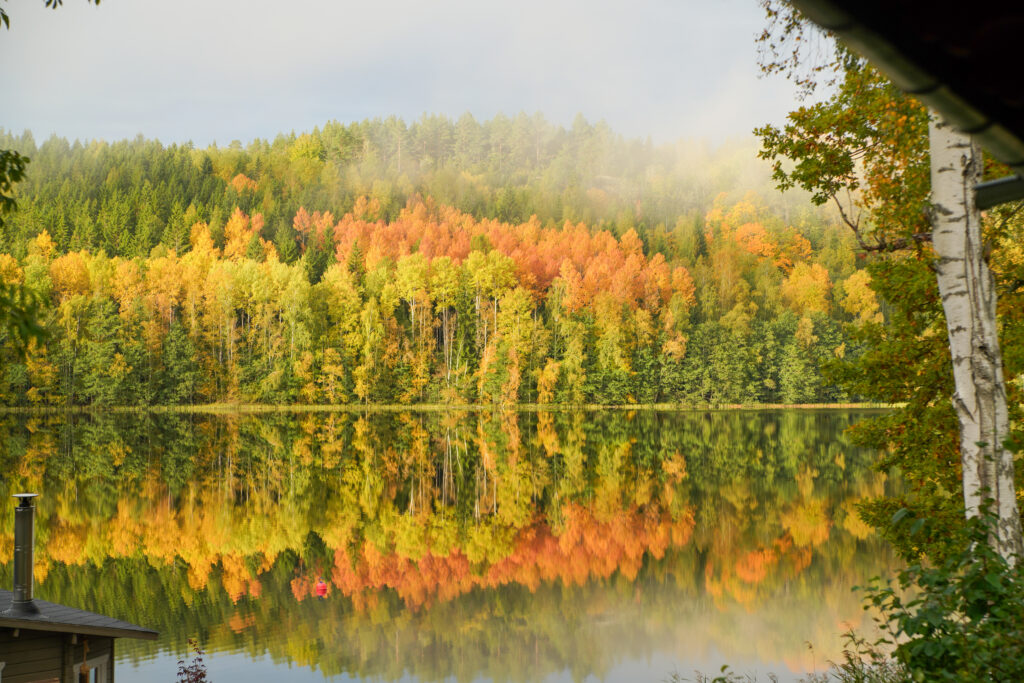 Hösten hade kommit och i sjön speglar sig alla färger på löven.